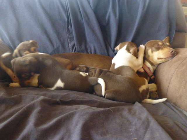 Sammie and her month old Rat Terrier pups