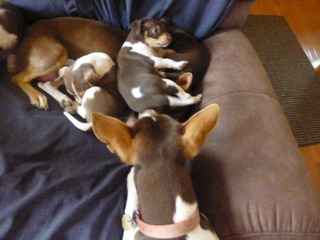 Sammie and her month old Rat Terrier pups