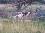 We went out last night to pull irrigation pipe for the rancher my husband works for, and of course, we had to take all of our dogs with us. This is a beautiful piece of property, with juniper trees around the edge of the pastures. The pipe we were moving is up at the edge, so the dogs were off in the trees chasing bunnies and hunting for whatever critters may be hiding in the dead fall. They also checked out the pipe, as bunnies love to hide in there, and mice frequently live underneath. Sage caught a mouse that we had disturbed as it went running down the path the pipe had created.