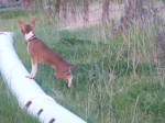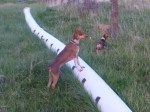 Here’s some shots I took. It was getting close to dark, the sun had just about set, so they’re not the best. Sammie loves to jump into one end of the pipe and run through to the other end, so I tried to get a few shots of that.