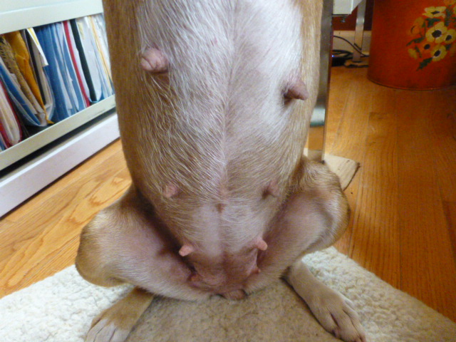 It is official! Sammie is definitely pregnant! Just in the last few days, she has gained almost 2 pounds! She is due on the 4th of July, so the puppies will be ready to go to their new homes in mid September. My Colt is the sire to the pups. I hope these two combined will put good bone and solid build, thick coat, good angulation and excellent temperaments on the pups. I expect the pups will be very people oriented, friendly and easy to train. Hunt will be very strong, as both Sammie and Colt successfully hunt and kill prairie dogs, mice and an occasional squirrel and cottontail bunny.