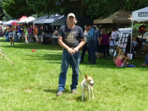 My husband and I went down to the local pioneer days celebration yesterday to check it out and take a couple of the dogs. I chose to take Colt and Maddie with us this time. It was a relatively small event, but enough to get the dogs introduced to a large number of people and noise. They did well, a bit nervous and apprehensive, but relaxed after a little while. We sat and listened to a lady singing old cowboy songs, she was good, and the dogs relaxed and started sniffing around the tables. Little kids kinda scared them, as they rarely see kids, but all in all, they did well.