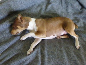 Sammie now has roughly 3 more weeks of being pregnant, and she is definitely showing! She’s gained a bit, around a pound in the last week. It has been getting a little warmer out, frequently around 85 degrees, but then cool in the evenings, with lots of storms coming through, so I’m sure it has been affecting how she feels. She’s been laying kinda low, not as active as she normally is, but still going out with me to irrigate and going with my husband. But she seems to be as content to just stay home and hang out on the couch or the bed. And she’s loving dinners and eating well.