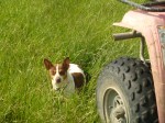 Her pedigree on her sire’s side goes back to Fire Mountain’s Tonka several times, Sycamore Flat’s Tuffy and Sycamore Flat’s Lacey, and other Fire Mountain dogs. Her dam is from two Rat Terriers that Deri worked hard to bring into the registry that are from Iowa. Both had a very strong hunting drive.